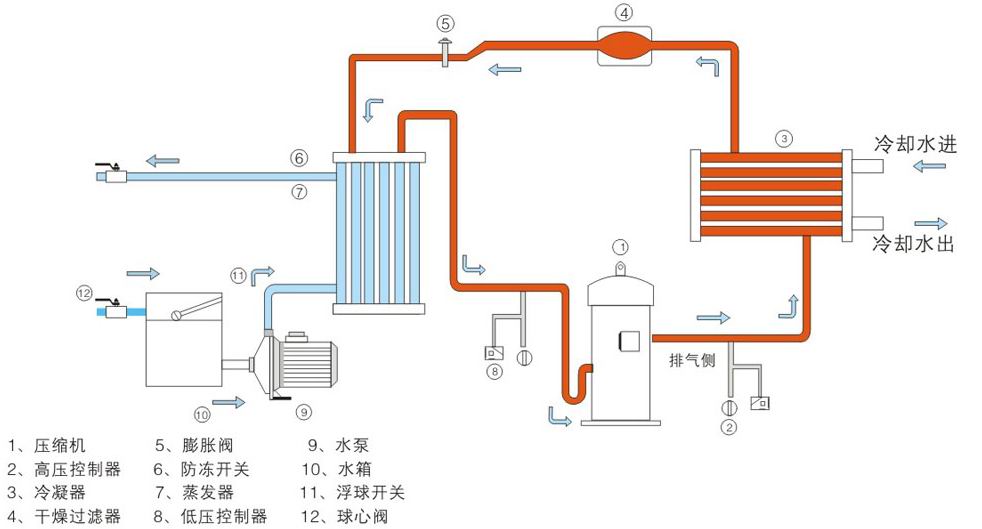 水冷式冰水機(jī)的原理【圖】,本文精要的介紹了冰水機(jī)的原理,并附有高清的水冷式冰水機(jī)工作原理圖,歡迎大家查看,收藏!